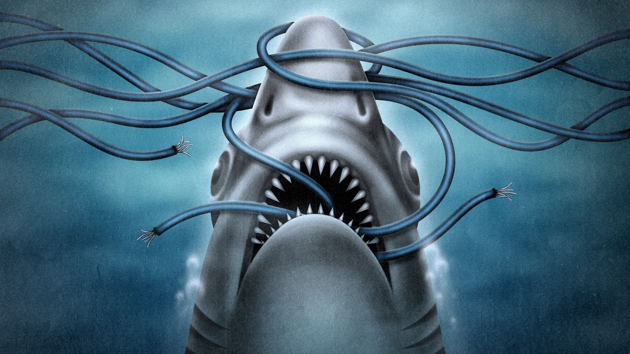 Como familia de peces cartilaginosos, los tiburones son colectivamente inocentes de la mayoría, si no de todos, los cargos de morder, masticar o atacar de cualquier otro modo la red submarina de cables de fibra óptica. Las personas que construyen y mantienen los casi 600 cables submarinos que transportan casi todo nuestro tráfico intercontinental (los que soportan casi todos los swipe, tap, Zoom, y el doomscroll en cualquier parte del planeta) tienen una relación de amor-odio con este mito, que ha persistido durante décadas.