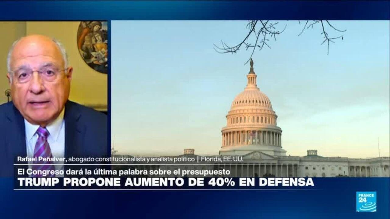 Donald Trump propuso aumentar en un 40% el presupuesto de defensa de Estados Unidos, llevándolo a un récord histórico de 1,5 billones de dólares. La medida, presentada como necesaria en el contexto de la guerra contra Irán, incluye recortes en programas sociales, educativos y ambientales. Rafael Peñalver, abogado constitucionalista y analista político, analiza el tema en France 24.