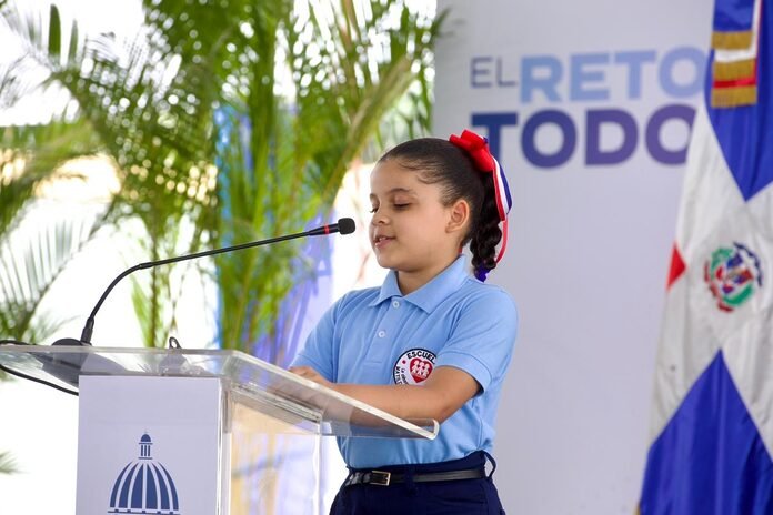 De pie y frente al presidente Luis Abinader, Yaslin le agradeció al jefe de Estado en nombre de todos los estudiantes de este centro, por apoyar la educación de los niños y niñas de la República Dominicana, asegurando que su presencia los hace sentir importantes y les demuestra que sus sueños sí cuentan.